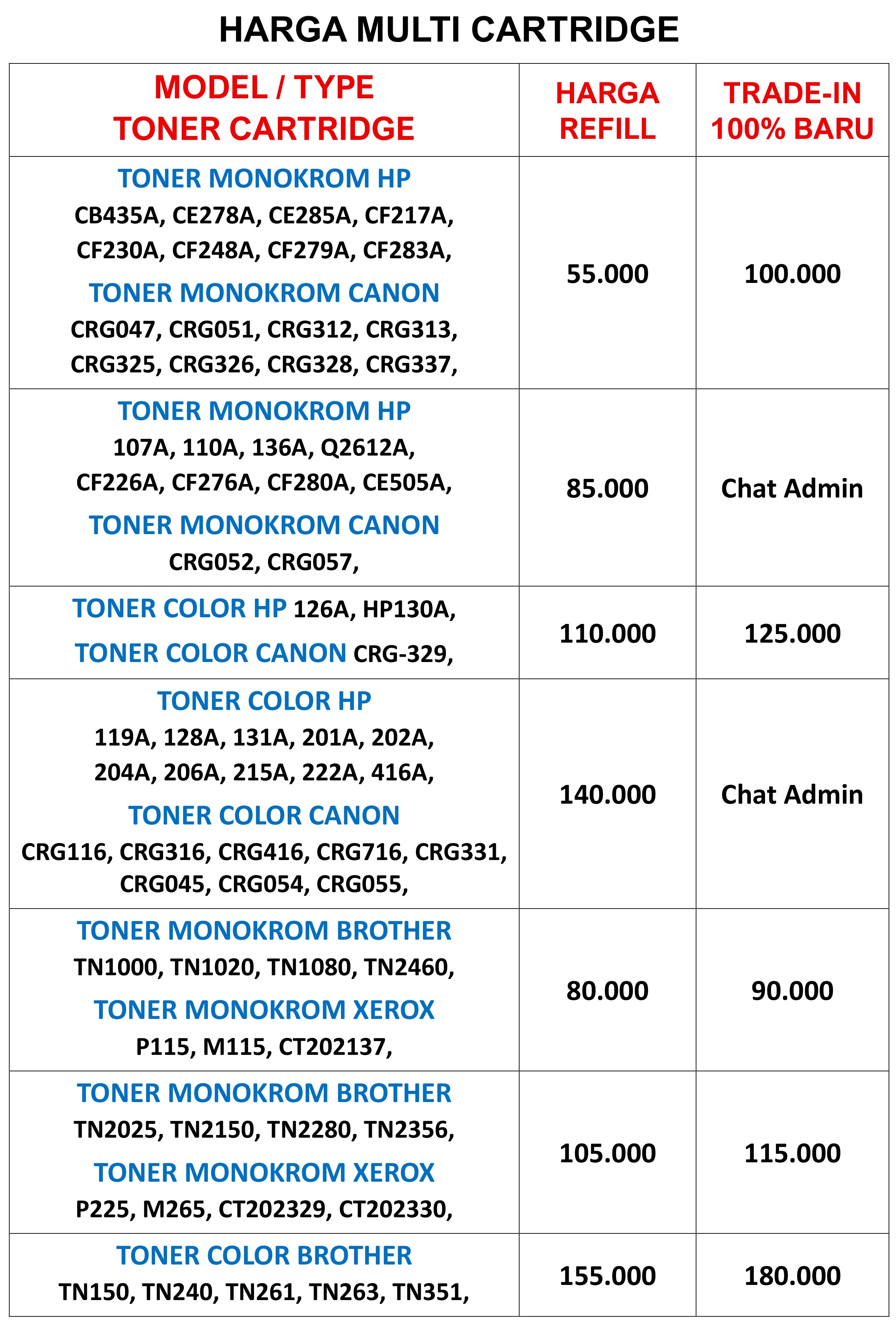 - Tersedia untuk printer laserjet HP, Canon, Brother, Fuji Xerox.