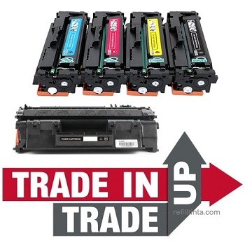 - Trade-in atau tukar toner cartridge kosong dengan toner cartridge compatible terisi toner 100% baru buatan pabrik.